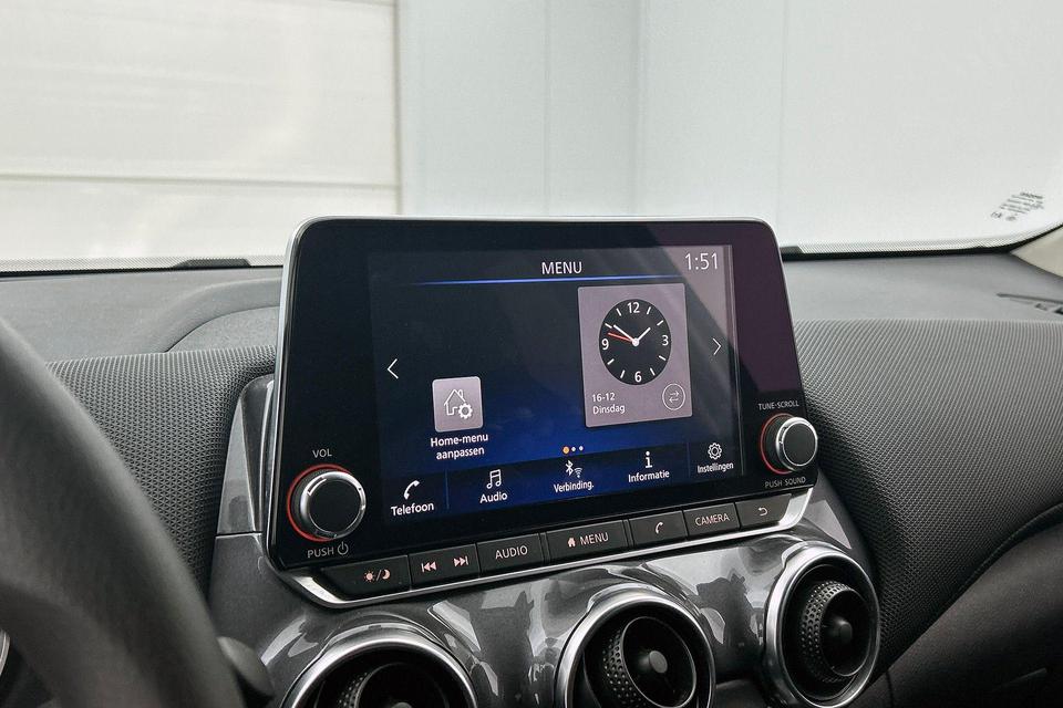 Met de nieuwste technologieën aan boord is deze Nissan in staat om zelf te reageren op potentieel gevaarlijke situaties op de weg. In het instrumentarium kunt u bovendien de verkeersborden zien die u onderweg tegenkomt. Zo helpt deze Nissan u om veiliger te rijden. Het Lane-keeping systeem let constant op en waarschuwt of corrigeert als u onoplettend over de lijnen van de rijstrook gaat. In een noodsituatie waarschuwt forward collision warning bij een dreigende aanrijding met een voorligger. Bovenop deze veiligheidsfeatures heeft deze Nissan bovendien hill hold functie, brake assist en bandenspanningcontrolesysteem.