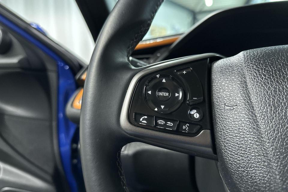 Nooit meer parkeerschade dankzij de achteruitrijcamera. Adaptive cruise control is veilig en comfortabel. De snelheidsregelaar houdt automatisch afstand tot het voertuig dat voor u rijdt. Elk genre muziek komt tot z'n recht. Het high performance audiosysteem is perfect in te regelen op uw smaak! Gedoe met kabels en stekkers in de sigarettenaansteker is voorbij. De aanwezige draadloze oplaadmogelijkheid voor telefoons zorgt voor wireless recharging van uw smartphone. De sensoren van de achteropkomend verkeer waarschuwing registreren wat er gebeurt in de dode hoeken en achter u. U krijgt meteen een waarschuwing als u een achterligger over het hoofd ziet. De Honda is standaard voorzien van: full map navigatiesysteem, electronic climate control, DAB ontvangst, regensensor, keyless entry en automatisch dimmende binnenspiegel.