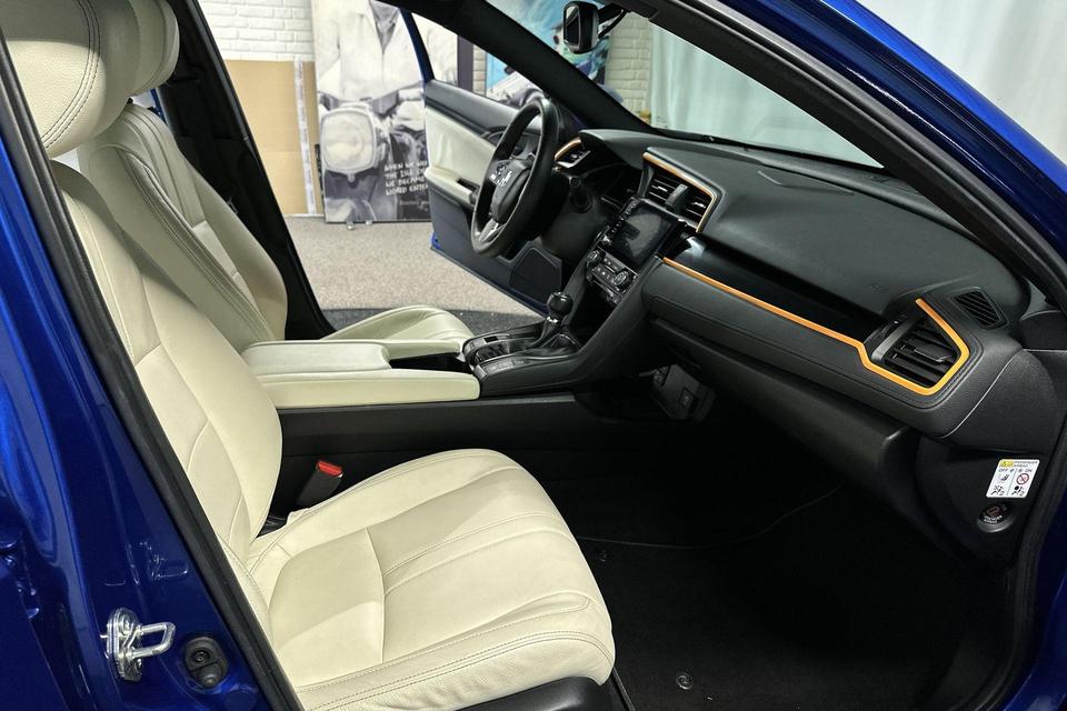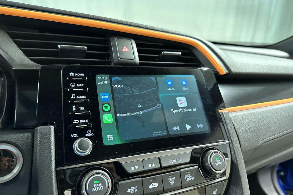 Mooie Honda Civic 1.5 i-VTEC Sport Plus met 182 PK. Voorzien van lederen bekleding en is het facelift type met de mooie zwarte velgen, gewijzigde bumpers en diffuser, verbeterde infotainment.