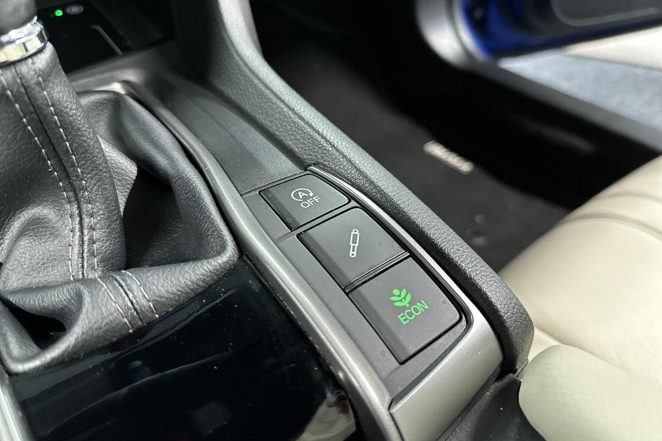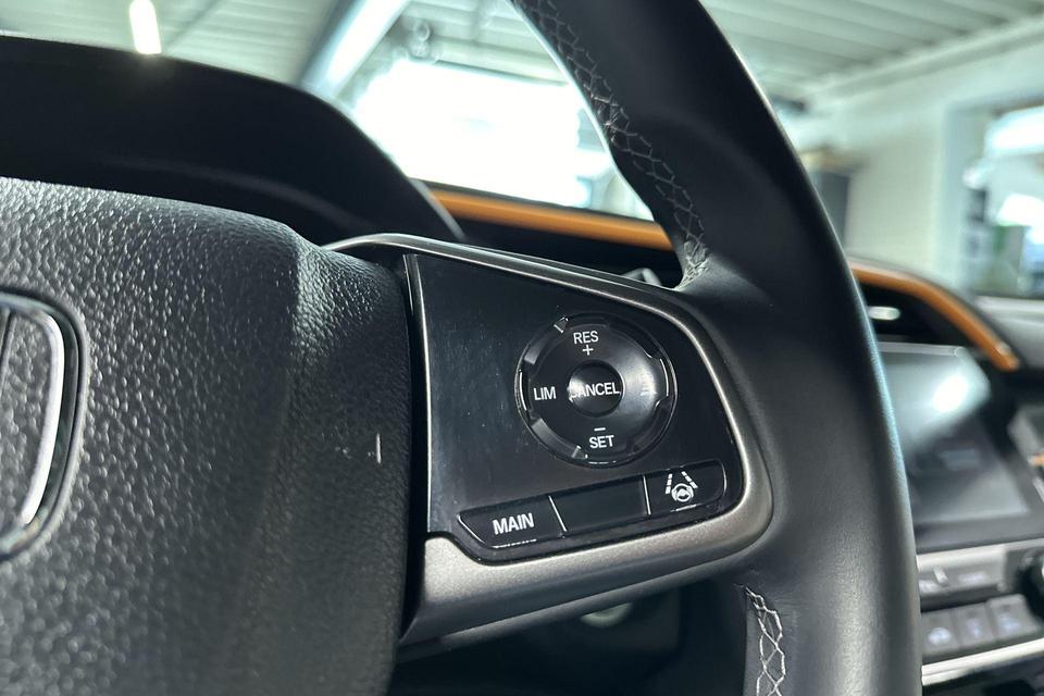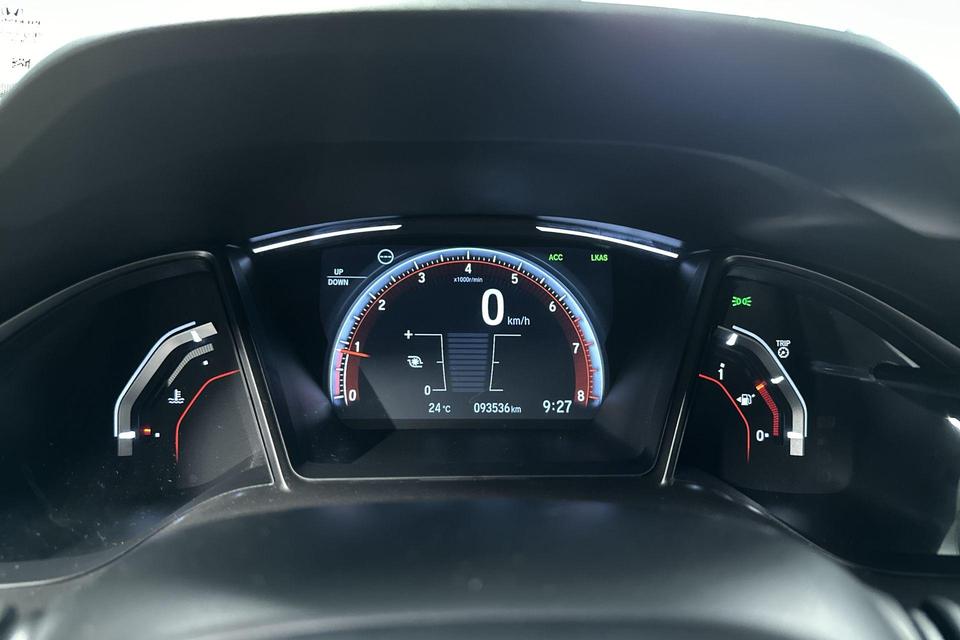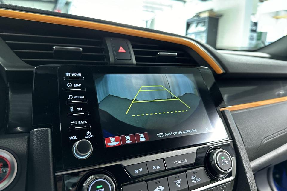 De automatische veiligheidssystemen in deze Honda fungeren als een extra paar ogen. En dat niet alleen, ze kunnen ook actief ingrijpen, om zo u en uw passagiers te beschermen. Onderweg zorgt verkeersborddetectie ervoor dat u geen waarschuwingsbord mist. Deze Honda Civic is ook behulpzaam als het gaat om een rechte koers. Het Lane-keeping systeem signaleert en corrigeert als u onbedoeld de rijstrooklijnen dreigt te overschrijden. Forward collision warning waarschuwt bij een dreigende aanrijding met een voorligger. Bovenop deze veiligheidsfeatures heeft deze Honda bovendien dodehoekdetectie, hill hold functie, brake assist en bandenspanningcontrolesysteem.