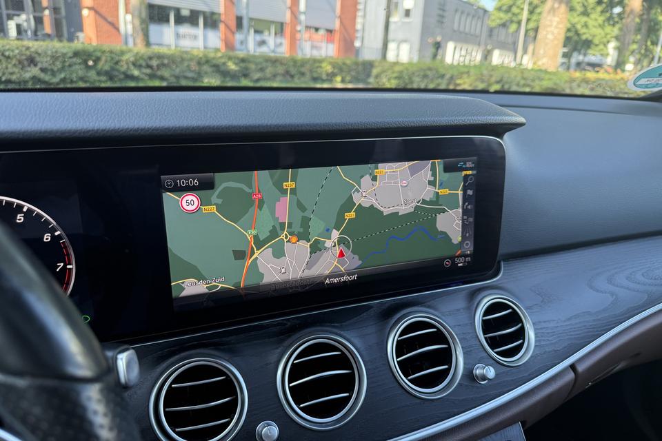 Zoals u mag verwachten van deze Mercedes-Benz E-klasse is hij uitgerust met een reeks aan actieve veiligheidssystemen. Dat de auto steeds meer taken van de bestuurder overneemt, merkt u bijvoorbeeld aan het systeem voor verkeersbord-detectie in deze auto. Het Lane-keeping systeem zorgt dat u mooi binnen de lijntjes blijft. Ongemerkt buiten de rijstrook komen is er niet meer bij. De actieve dodehoekdetectie minimaliseert het gevaar van ongelukken wanneer u afslaat of inhaalt. Bovenop deze veiligheidsfeatures heeft deze Mercedes-Benz bovendien forward collision warning system, brake assist, vermoeidheidsherkenning en bandenspanningcontrolesysteem.