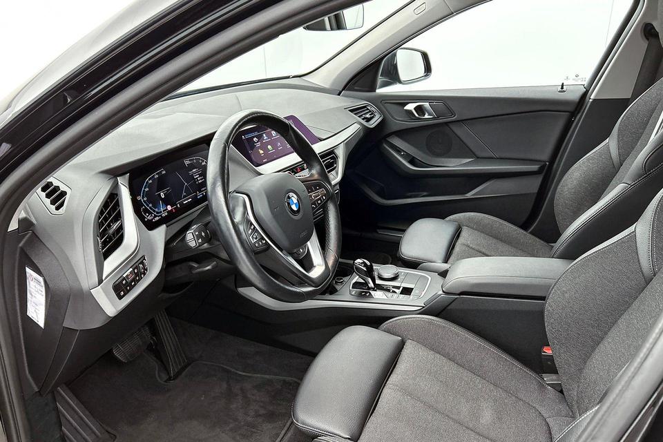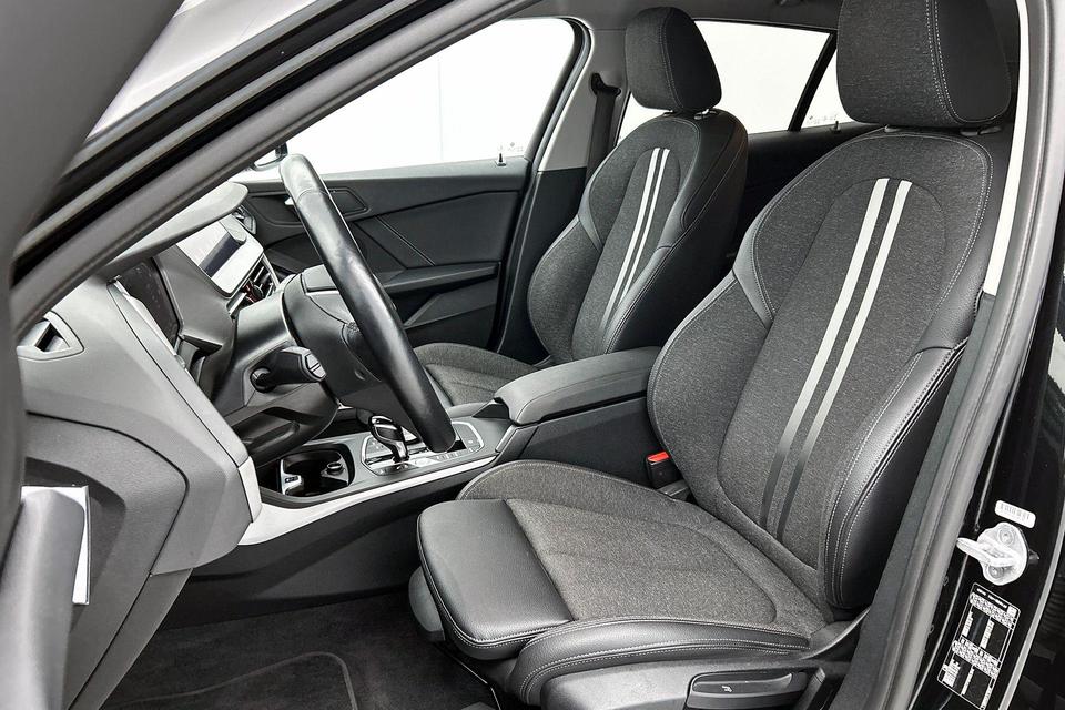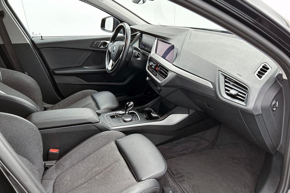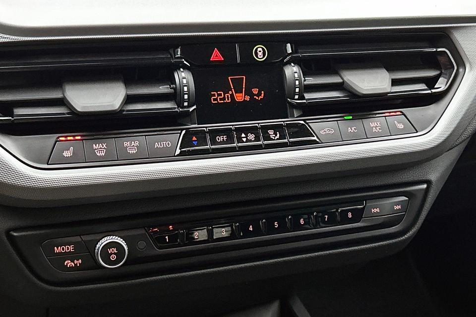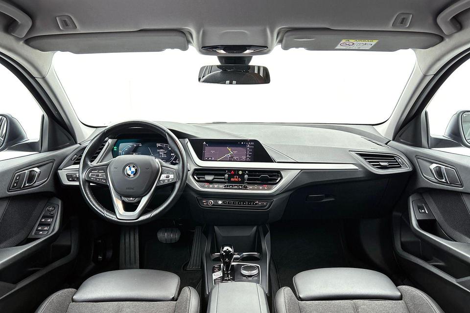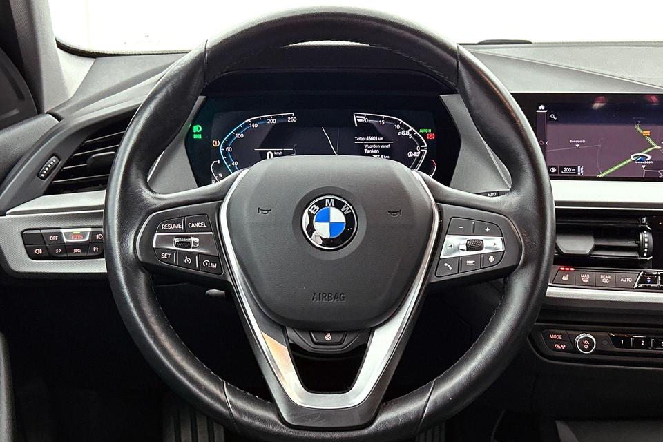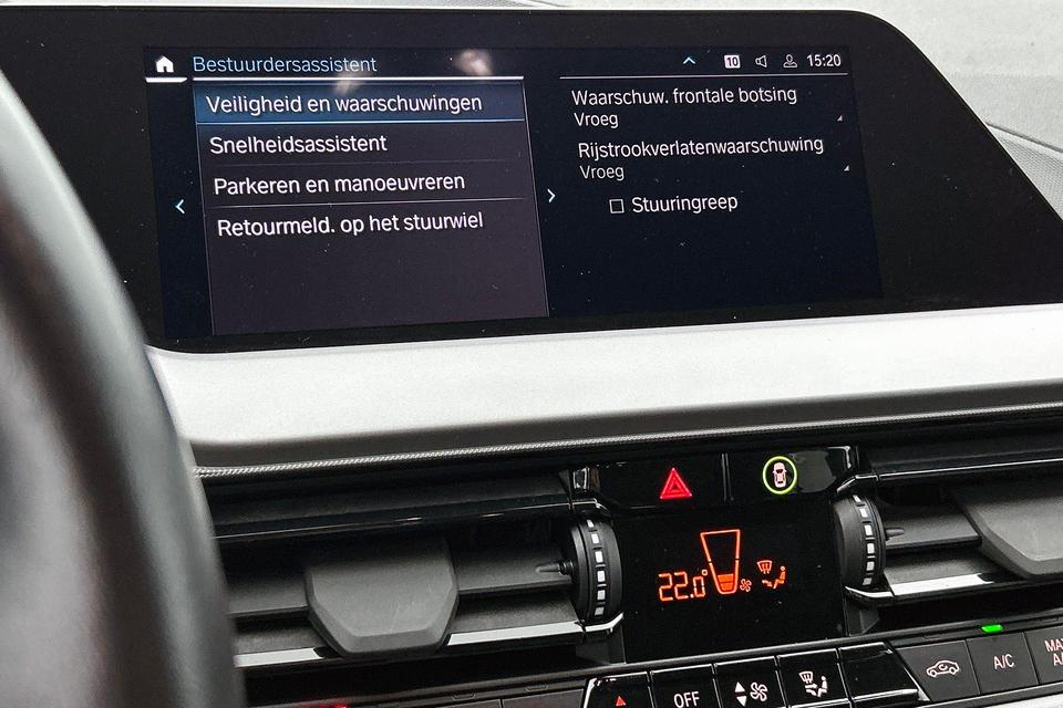 Alle functies voor een veilige en zuinige rit worden overzichtelijk weergegeven op het digitale dashboard. Via uw smartphone en Connected Services checkt u eenvoudig de belangrijke functies van de auto, overal en altijd. Een optie die de veiligheid verhoogt, is de bediening vanaf het stuur van het audio-installatiesysteem (met DAB-radio!) en het full map navigatiesysteem. Als u wilt kunt u beiden zelfs met uw stem bedienen. Omdat u nu eenmaal niet overal ogen heeft, is deze BMW 1-serie voorzien van een achteropkomend verkeer waarschuwing die registreert wanneer de afstand tot uw achterligger te krap is. Of het buiten nu warm is of koud, dankzij electronic climate control is het binnen altijd behaaglijk. U bent in deze BMW ook voorzien van parkeersensoren achter, regensensor, cruise control, automatisch dimmende binnenspiegel, isofix-aansluiting en centrale deurvergrendeling met afstandsbediening.