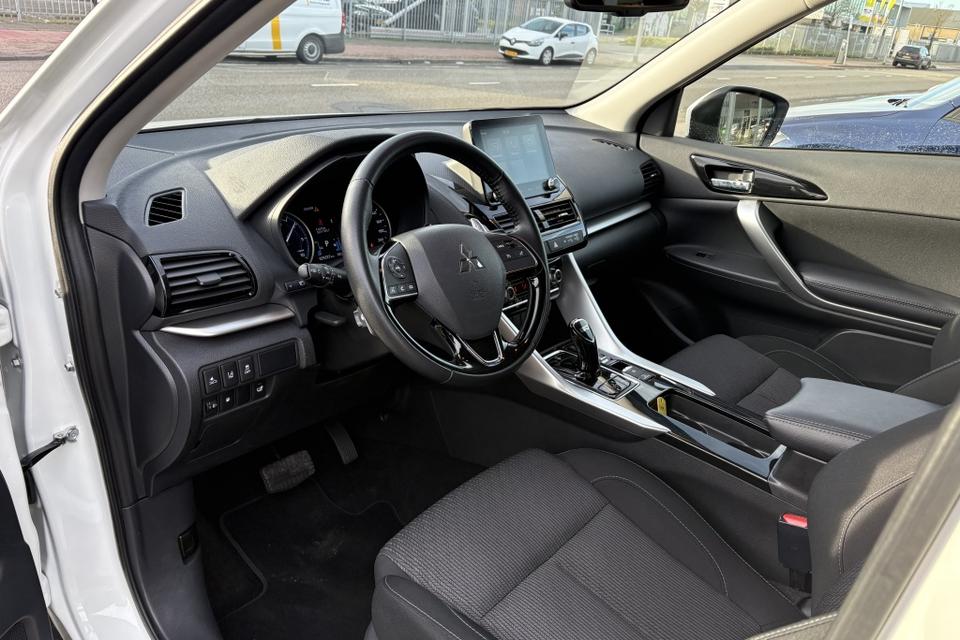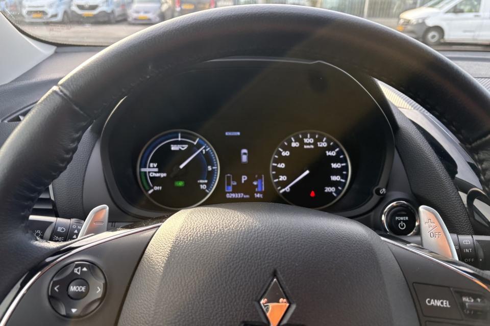 Deze prachtige witte Eclipse Cross is niet alleen een lust voor het oog, maar ook voorzien van de meest luxueuze opties. Zo beschikt de auto over een stuur bekleed met hoogwaardig leder, wat niet alleen zorgt voor een comfortabel rijgevoel, maar ook een chique uitstraling geeft aan het interieur.