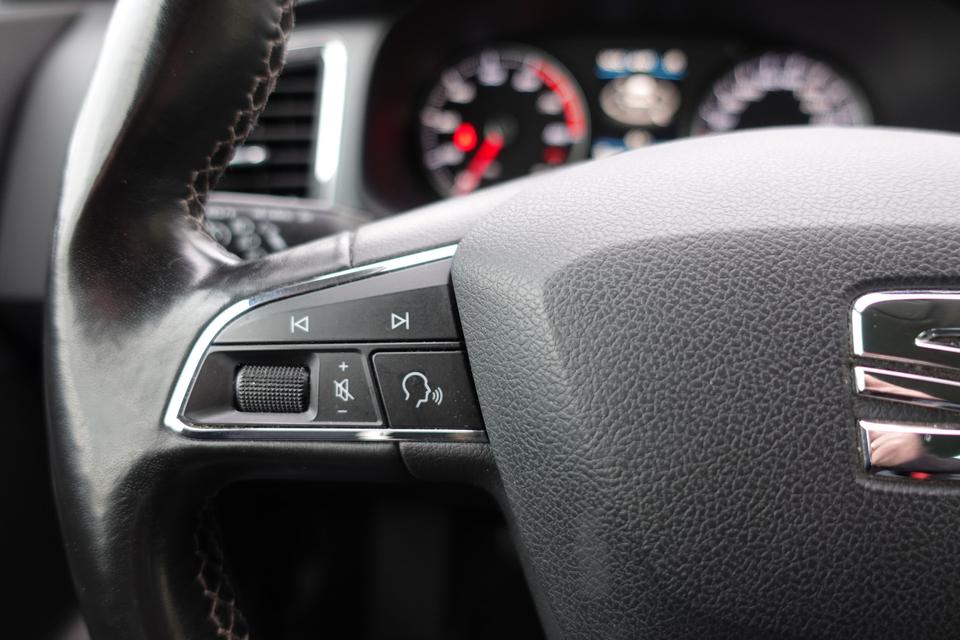 Nooit meer parkeerschade dankzij de achteruitrijcamera. Veilig en comfortabel rijden wordt nog eens versterkt door Connected Services, zodat u diverse vitale functies van de auto altijd kunt checken in de app. Zuinig, veilig en ontspannen op pad: dat kan dankzij het aanwezige full map navigatiesysteem. Tot de standaard uitrusting van deze auto hoort ook automatische airconditioning. Gemak en veiligheid gaan prachtig samen. Bijvoorbeeld door de audiobediening op het stuur. De uitrusting van deze SEAT is met DAB ontvangst, regensensor, cruise control, buitentemperatuurmeter, automatisch dimmende binnenspiegel en lederen stuur behoorlijk compleet.