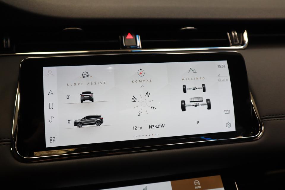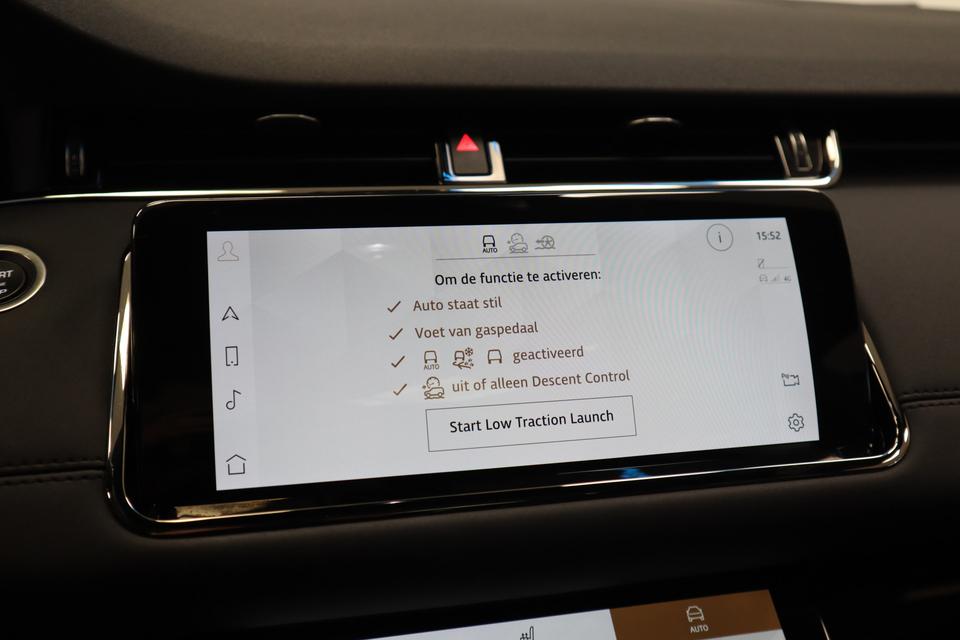Deze Land Rover is voorzien van verschillende intelligente veiligheidsvoorzieningen. Ze kijken tijdens het rijden als het ware met u mee, ze signaleren potentieel gevaarlijke situaties en in een aantal gevallen kunnen ze ook ingrijpen. Uiteenlopende functies maakt de head-up display zichtbaar in de voorruit. Tijdens de rit hebt u altijd een bijrijder, want de verkeersbord-detectie leest de borden langs de weg en projecteert ze voor u op het instrumentarium. Mooi binnen de lijnen van de rijstrook blijven? Het Lane-keeping systeem helpt altijd een handje. Bovenop deze veiligheidsfeatures heeft deze Land Rover bovendien dodehoekdetectie, hill hold functie, vermoeidheidsherkenning, autonoom remsysteem en bandenspanningcontrolesysteem.