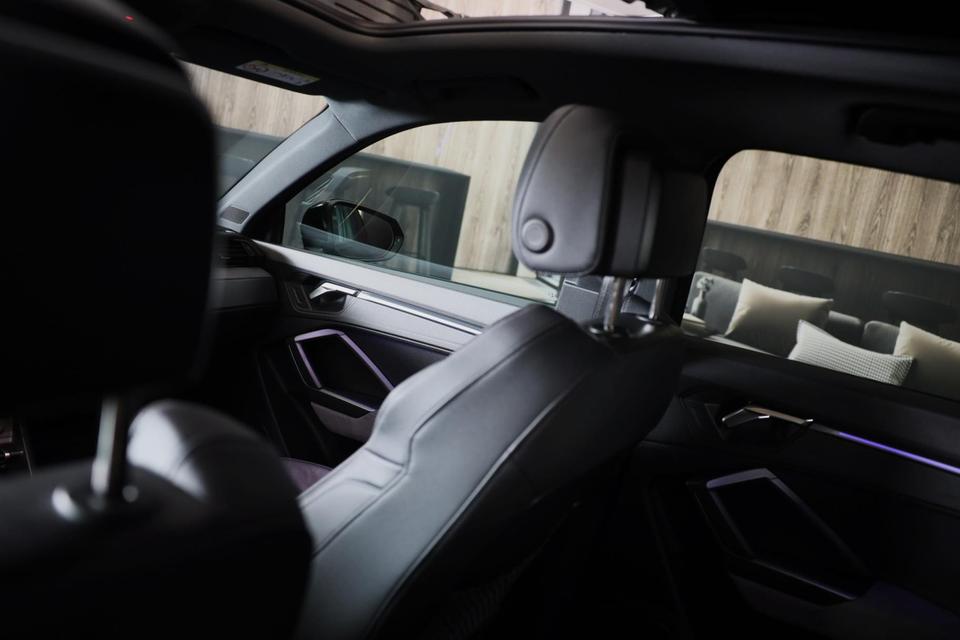 Laat u niets wijsmaken, deze Audi Q3 biedt alles wat u van een auto verlangt. Voor liefhebbers van rijplezier is de S-Line styling een belangrijke reden om voor deze auto te kiezen. De krachtige motor geeft deze Audi uitstekende prestaties. Binnenin zien we een fraai afgewerkt lederen interieur. In deze uitvoering is de Q3 voorzien van mooie, maar ook functionele sportstoelen. Van binnen lijkt het allemaal uitermate ruim dankzij de vrije inval van daglicht via het elektrisch bediende glazen panoramadak. De elektrische achterklep opent met een druk op de knop, zodat u gemakkelijk toegang heeft tot de bagageruimte. U wordt in deze auto ook getrakteerd op open dak, 21 inch lichtmetalen velgen, LED koplampen, halflederen bekleding, warmtewerend glas en zwarte hemelbekleding.