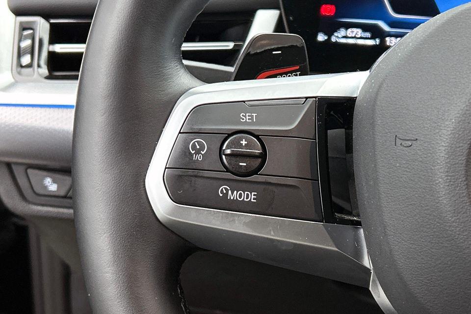 Alle ritinformatie en communicatie is gebundeld in één overzichtelijk digitale dashboard. Comfortabel en veilig achteruitrijden gaat gemakkelijker dan ooit met behulp van de achteruitrijcamera. Uw smartphone wordt een dashboard, met alle functies in beeld. Dankzij Connected Services en de speciale app. Maak uw smartphone echt draadloos, ook bij het opladen. Met de draadloze telefoonlader. Aan boord van deze BMW X1 is een achteropkomend verkeer waarschuwing voor extra veiligheid. Ook dashboard met spraakbediening, full map navigatiesysteem, automatische airconditioning, sportstuur met schakelpaddels, DAB ontvangst en regensensor horen tot de voorzieningen op deze auto.