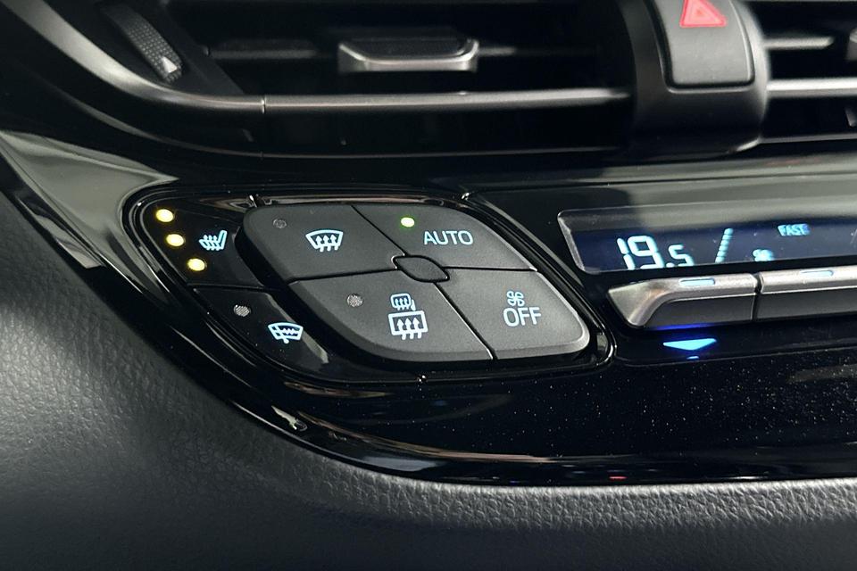 U zoekt een betrouwbare auto met uitstekende rijkwaliteiten? Dan is deze Toyota C-HR een geweldige keuze! Twijfelt u nog tussen rijden op benzine of elektrisch? Niet nodig. Deze hybride Toyota C-HR doet het allebei. De stoelen zijn verwarmd en bieden ook in winterse kou een comfortabele zit. Comfortabel houvast krijgt u van het verwarmd stuurwiel. Bij de zeer complete uitrusting van deze auto behoren ook 18 inch lichtmetalen velgen, LED koplampen, extra getint glas, in delen neerklapbare achterbank, LED-achterlichten en verstelbare lendensteunen.