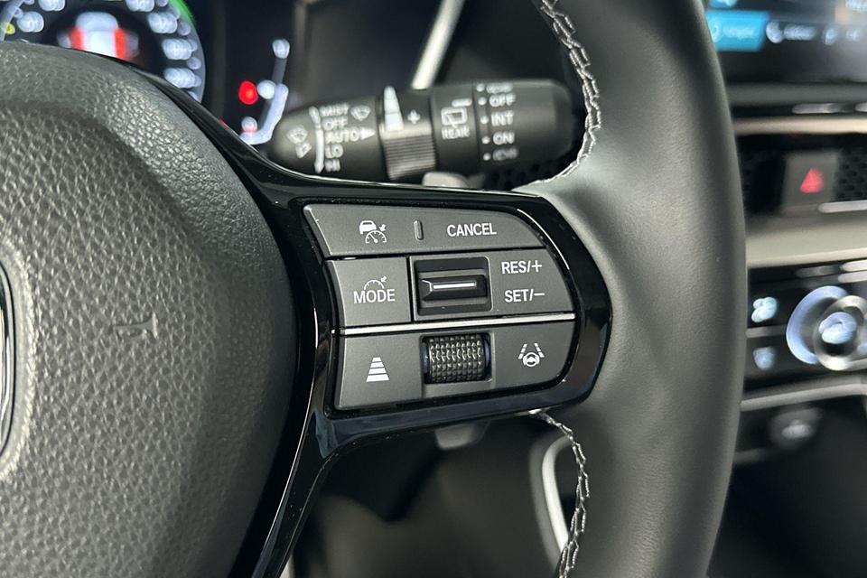 Deze Honda is voorzien van verschillende intelligente veiligheidsvoorzieningen. Ze kijken tijdens het rijden als het ware met u mee, ze signaleren potentieel gevaarlijke situaties en in een aantal gevallen kunnen ze ook ingrijpen. Rijden met het overzicht van een straaljagerpiloot? De praktische en veilige head-up display projecteert dashboardinfo binnen uw gezichtsveld, zodat u uw blik nooit hoeft te verplaatsen. Oog op de weg! Tijdens de rit hebt u altijd een bijrijder, want de verkeersbord-detectie leest de borden langs de weg en projecteert ze voor u op het instrumentarium. Met het Lane-keeping systeem gaat u nooit onbedoeld over de streep. Dankzij veiligheidsvoorzieningen als dodehoekdetectie, forward collision warning system, hill hold functie, brake assist, vermoeidheidsherkenning en bandenspanningcontrolesysteem, bent u steeds veilig onderweg.