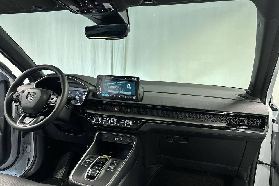Ontdek de digitale mobiliteitswereld, met zijn dashboard dat alle noodzakelijke informatie projecteert om uw reis comfortabel en veilig te maken. De 360 graden camera biedt een beter zicht bij slechte weersomstandigheden, waardoor u beter kan anticiperen op mogelijke gevaren. Met adaptive cruise control houdt de auto zelfstandig afstand tot uw voorligger. Een veiligheidsverhogende optie waarmee u comfortabel onderweg bent. Na een lange werkdag in de file: daar zit niemand op te wachten. Gelukkig helpt de file assistent een handje. Het radarsysteem meet de ruimte tot de voorligger en bewaakt de juiste afstand. Stilstaan? Dan remt en stopt de auto vanzelf. Deze Honda CR-V is voorzien van remote services. Via uw smartphone bedient u diverse functies ook op afstand en krijgt u informatie over de status van uw auto. Wat u ook in deze auto kunt vinden zijn premium audiosysteem, navigatiesysteem, kruisend verkeer detectie, automatische airconditioning, draadloos opladen en DAB ontvangst.
