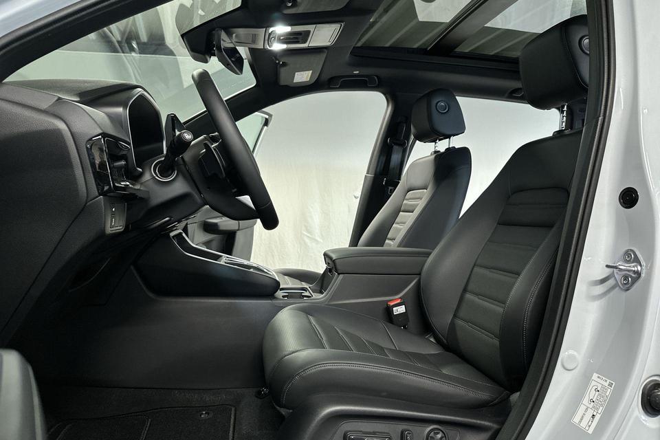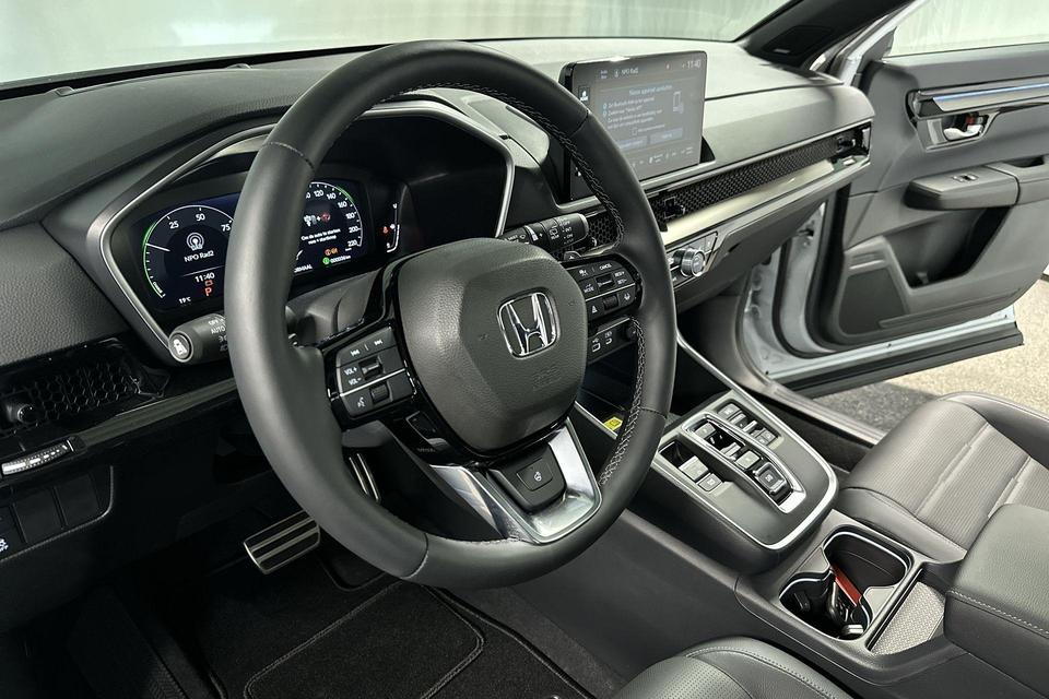 Modern design en bijzondere techniek bepalen de kwaliteiten van de hybride Honda CR-V. Hybride rijden is de ideale middenweg. Deze Honda CR-V biedt die mogelijkheid. Goedkoper rijden, schoner rijden en zo nodig over op benzine. De ideale combi! Het interieur van deze auto is bekleed met leer voor een ongeëvenaard luxueuze uitstraling. Zit u goed? De stoelen zijn eenvoudig instelbaar dankzij de elektrische bediening met geheugen. Met functies als stoelverwarming, verwarmbare achterbank en een verwarmbaar stuur, is comfort gegarandeerd in dit voertuig tijdens koude ritten. De elektrisch bedienbare achterklep opent met een druk op de knop. Het glazen panoramadak zorgt voor een onovertroffen uitzicht. In deze Honda profiteert u onder andere ook van: 18 inch lichtmetalen velgen, LED-koplampen, adaptief dempingsysteem, trailer assistent, dakspoiler en extra getint glas.