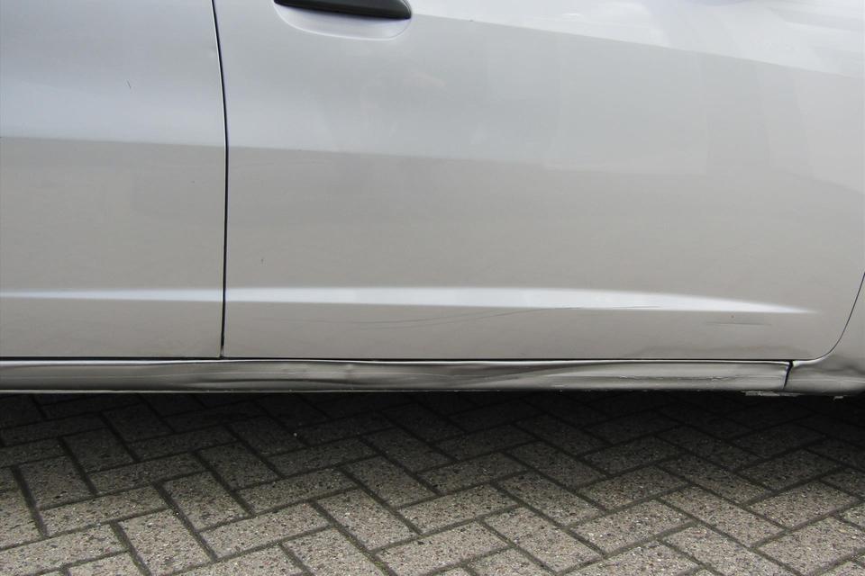 De buitenkant heeft diverse beschadigen zoals de krassen op de bumpers en een deuk in de dorpel R.